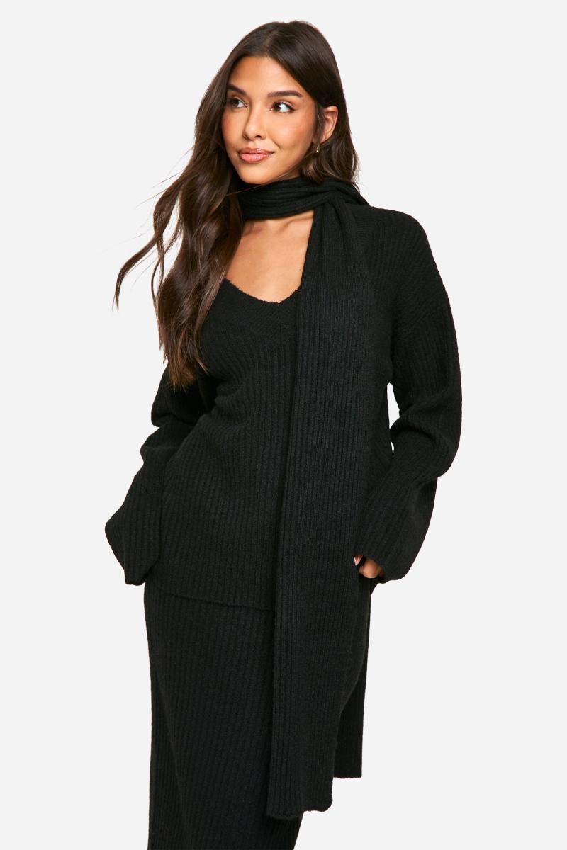 Великий джемпер і шарф із м’якої в’язки з V-подібним вирізом
