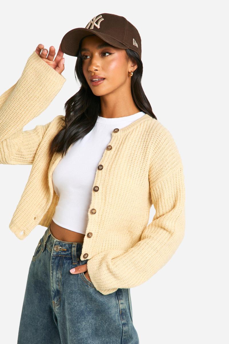 М'який в’язаний мікро кардиган з маленькою екіпаж