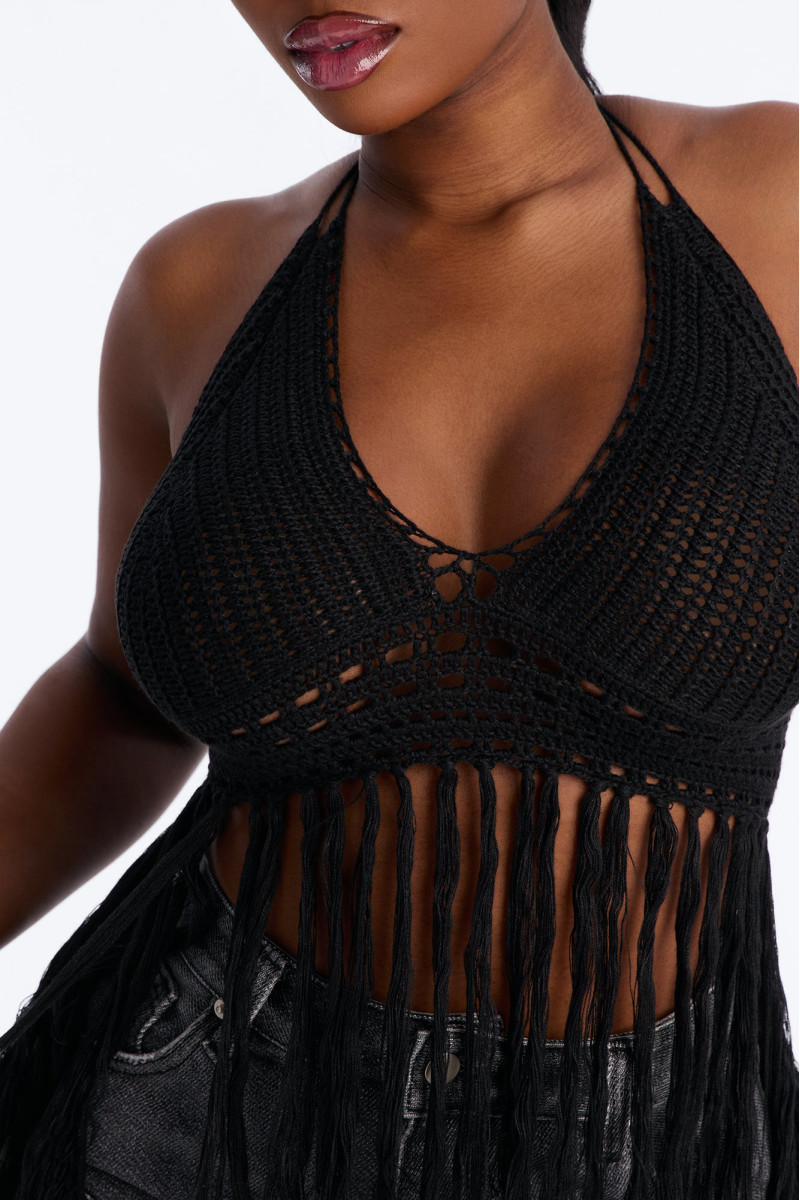 Цей вишуканий кроше-топ додасть вашому образу легкості та вишуканості. Ручна робота та витончений візерунок роблять його справжнім витвором мистецтва. Ідеально підходить для створення грайливих та романтичних образів, додаючи нотку богемного стилю.