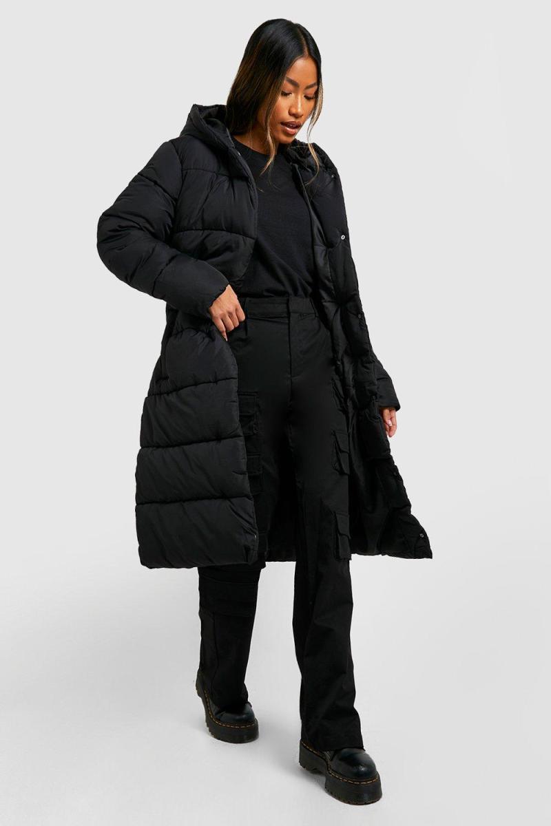 Довга пухова куртка з поясом