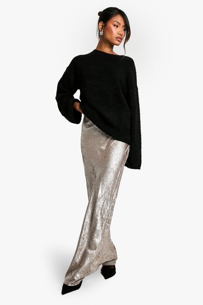 Спідниця максі з атласним металевим діамантом