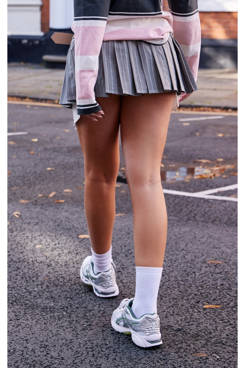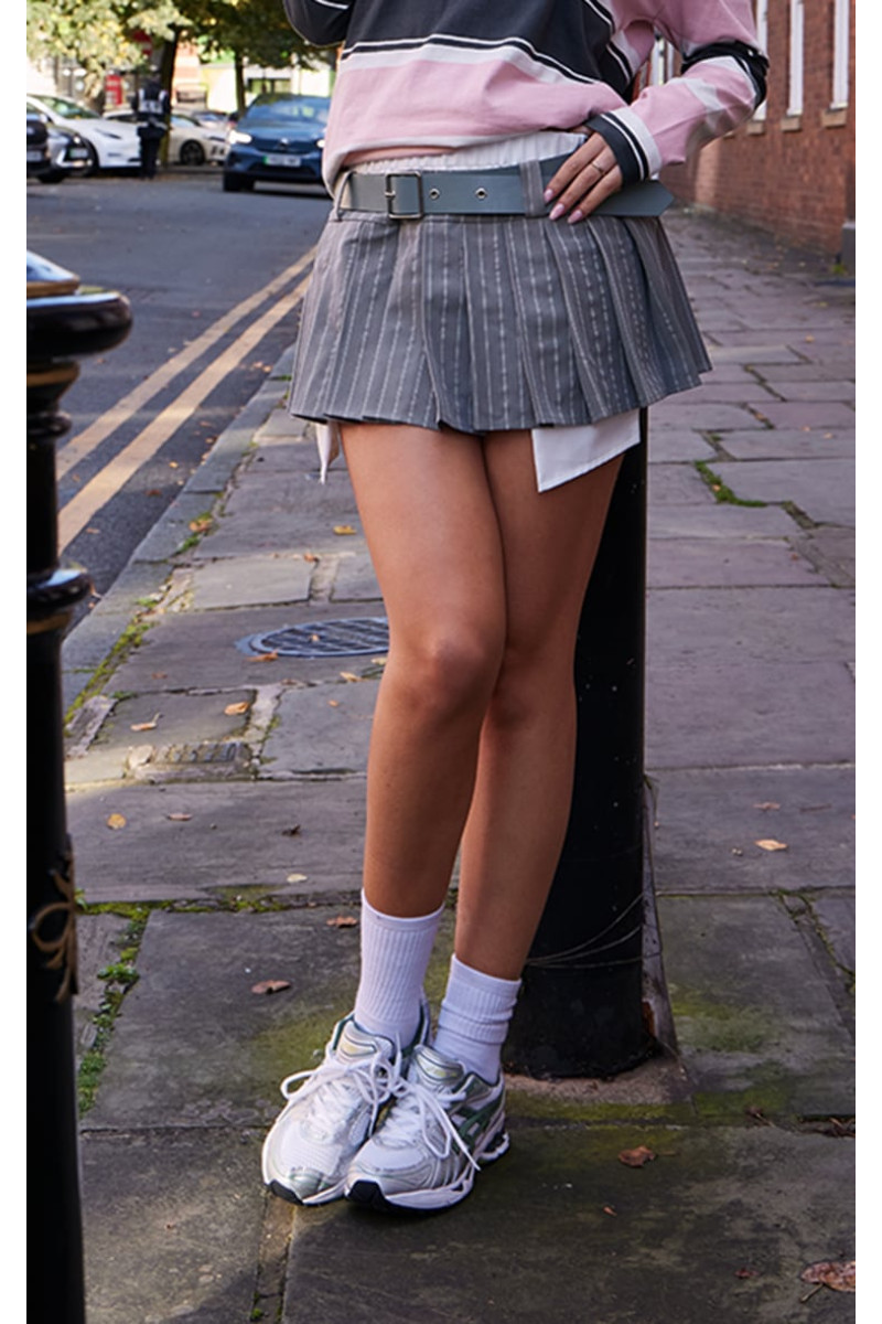Виглядайте дуже шикарно в цій сірій міні-спідниці зі плісированим поясом у смужку. Ця міні-спідниця, представлена вам у сірій смужці з плісированим дизайном і деталями пояса, викликає ваше ім’я. Стиль зі светром з довгим рукавом, свіжі нотки та ваші улюблені аксесуари створять неперевершений образ. Це так від нас. Довжина приблизно 33 см/13 дюймів (на основі розміру вибірки UK 8) На моделі одягнено розмір UK 8/ EU 36/ AUS 8/ US 4. Зріст моделі — 5 футів 6 дюймів. Категорія: Низ. Тип продукту: Міні-спідниця. Колір: сірий. Матеріал: тканий креп.