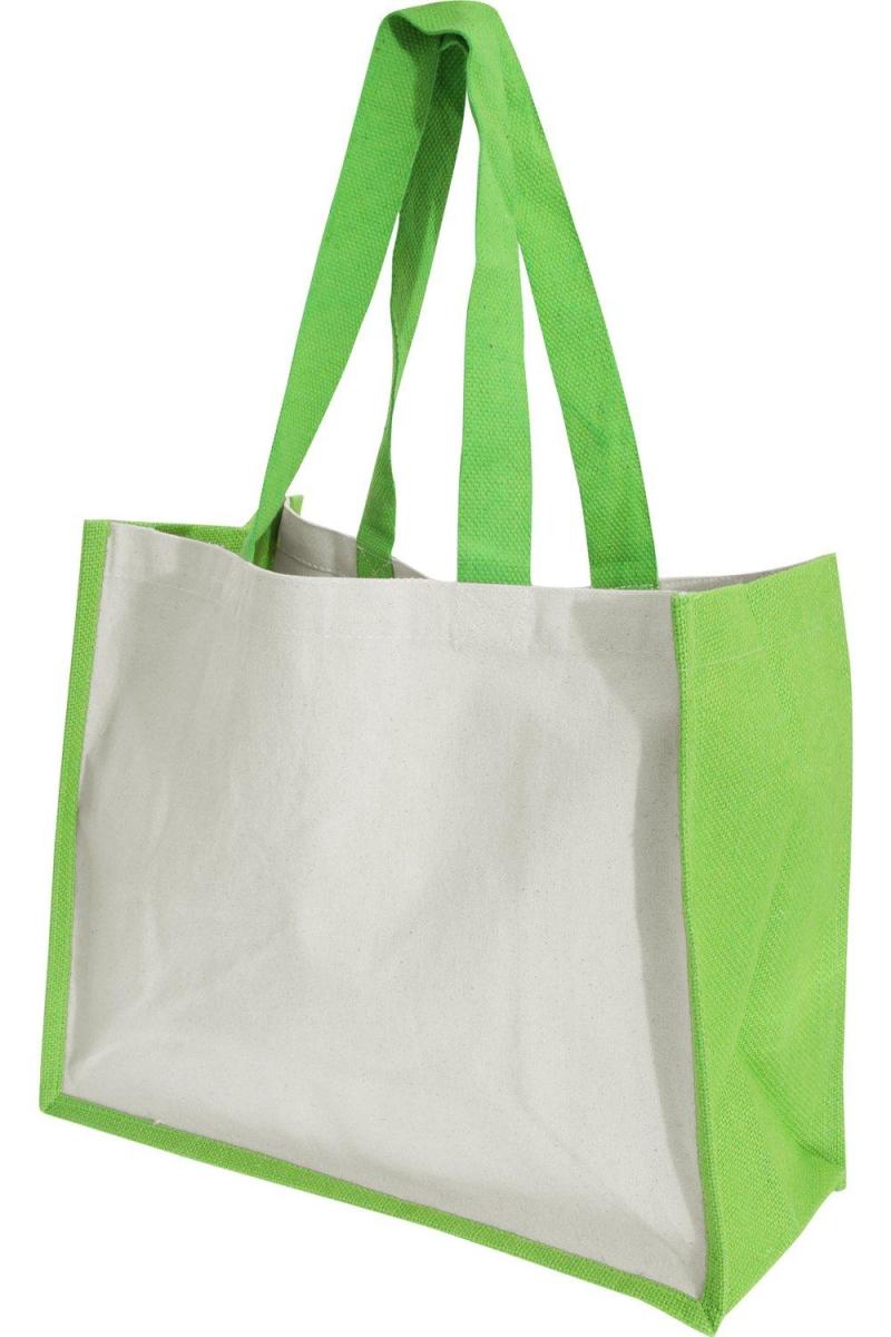 Упаковка з 2-х панелі полотен. Довжина ручки 65 см. Бавовна носить ручки. Можна носити вручну або через плече. Розміри: 42 x 33 x 19см. Максимальна площа друку: 34 х 26 см. Максимальна вишивка: 22 трубчастий обруч. Ємність: 21 літри. Вага: 248 г/м². Ламінований джут/ бавовняне полотно.