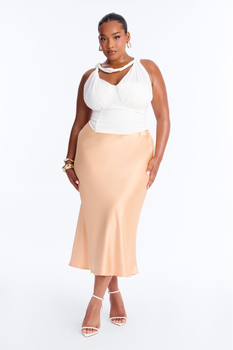 Відчуйте себе неперевершено в цій елегантній атласній міді-спідниці "Girls Need Love". М'яка, шовковиста тканина приємно облягає фігуру, а витончена довжина міді додає образу вишуканості. Ця спідниця стане ідеальним вибором для створення витончених вечірніх або святкових образів.