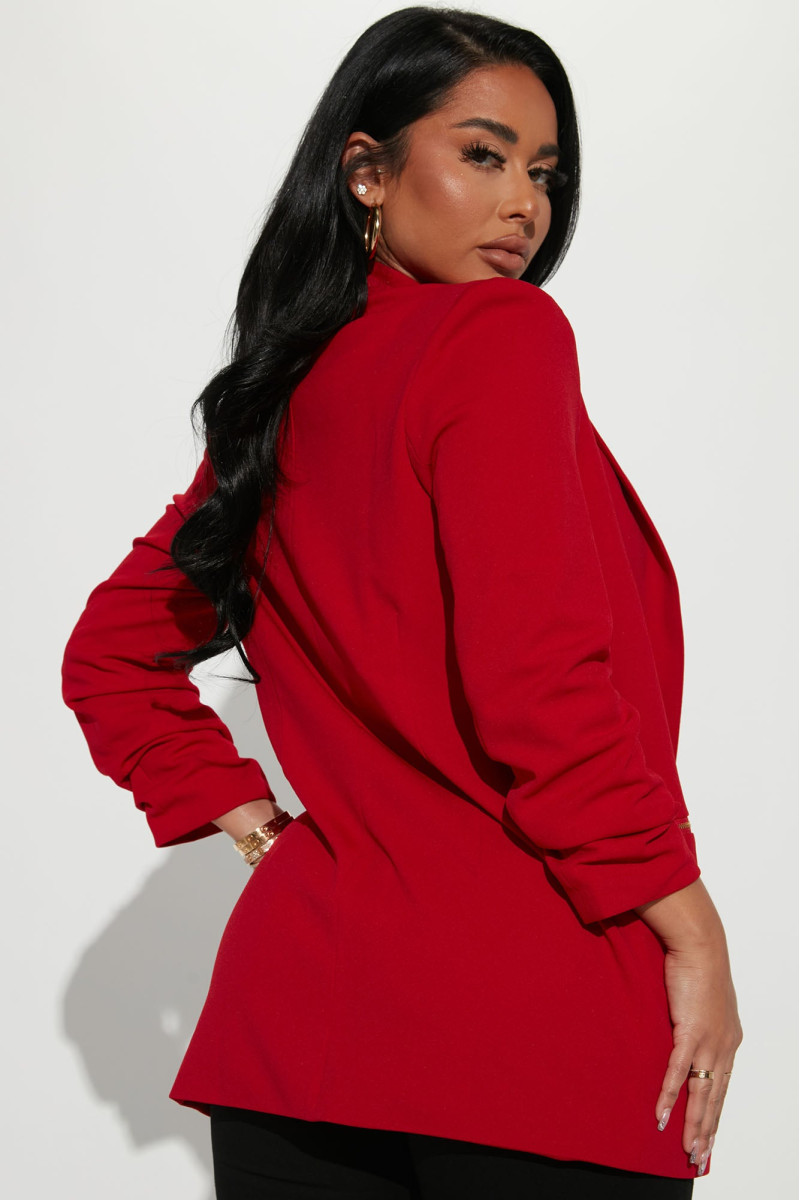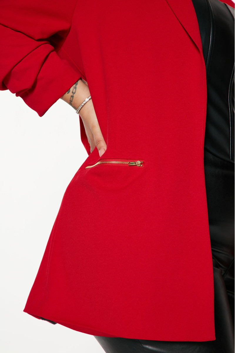 Елегантний блейзер з коміром та підкресленими плечима, що додають структури силуету. Рукав 3/4 з ефектом руш (зморшок) надає виробу вишуканості. Модель має декоративну деталь на блискавці та повну підкладку для максимального комфорту. Виготовлений з еластичної тканини, що чудово сідає по фігурі.