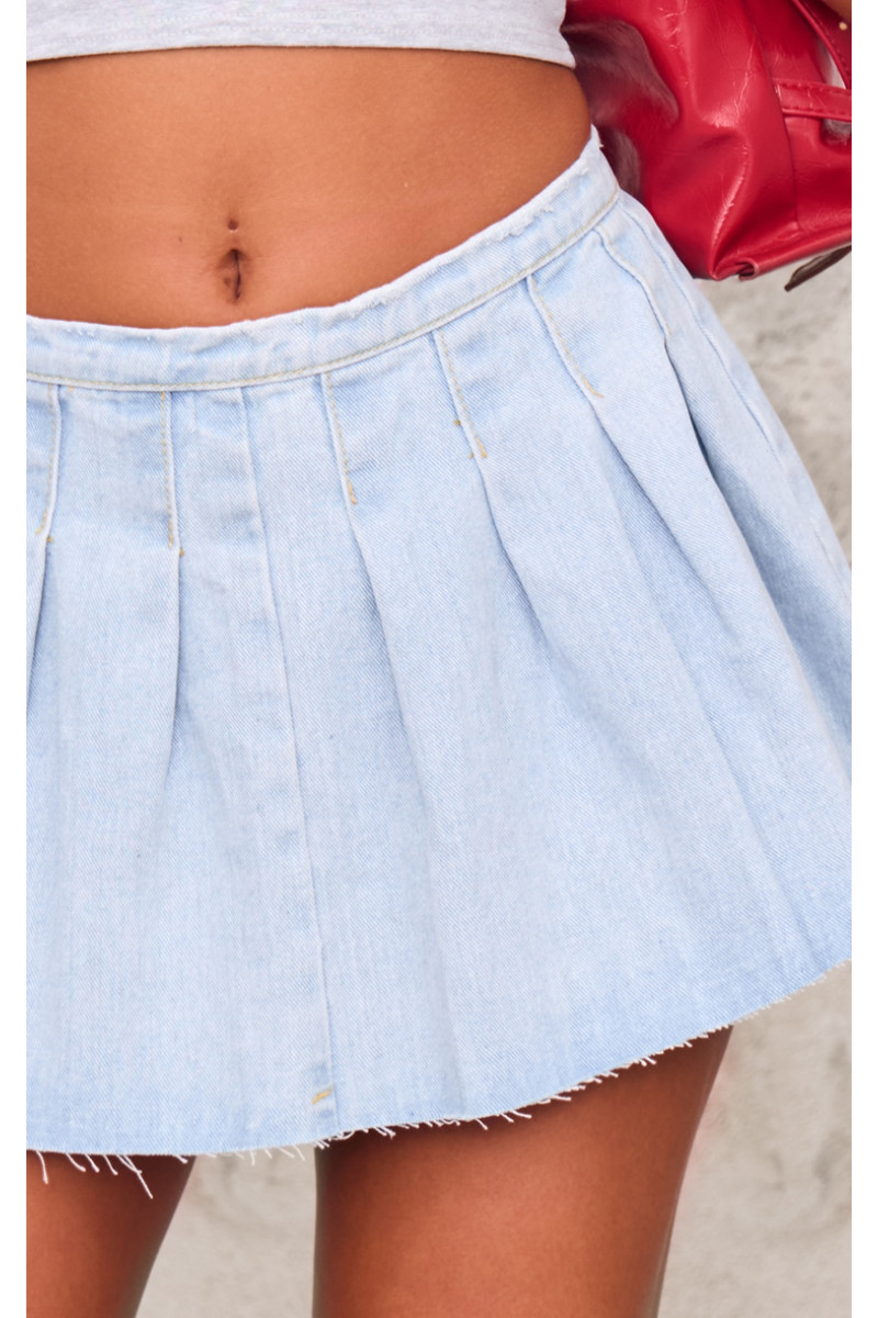 Підготуйте свою колекцію нового сезону стильно з цією світло-блакитною джинсовою міні-спідницею з низькою посадкою. Ми знаємо, що це на радарах кожного. Він має світло-блакитний джинсовий матеріал із заниженою талією та ідеально підходить для фігури. Що ще можна побажати? Стиль із відповідним корсетним верхом, високими чоботями та блейзером для ідеального шику, який обов’язково відтворить атмосферу нового сезону. Довжина приблизно 33 см/13 дюймів (на основі розміру вибірки UK 8) На моделі одягнено розмір UK 8/ EU 36/ AUS 8/ US 4. Зріст моделі — 5 футів 7 дюймів. Категорія: Денім. Тип продукту: Спідниця. День