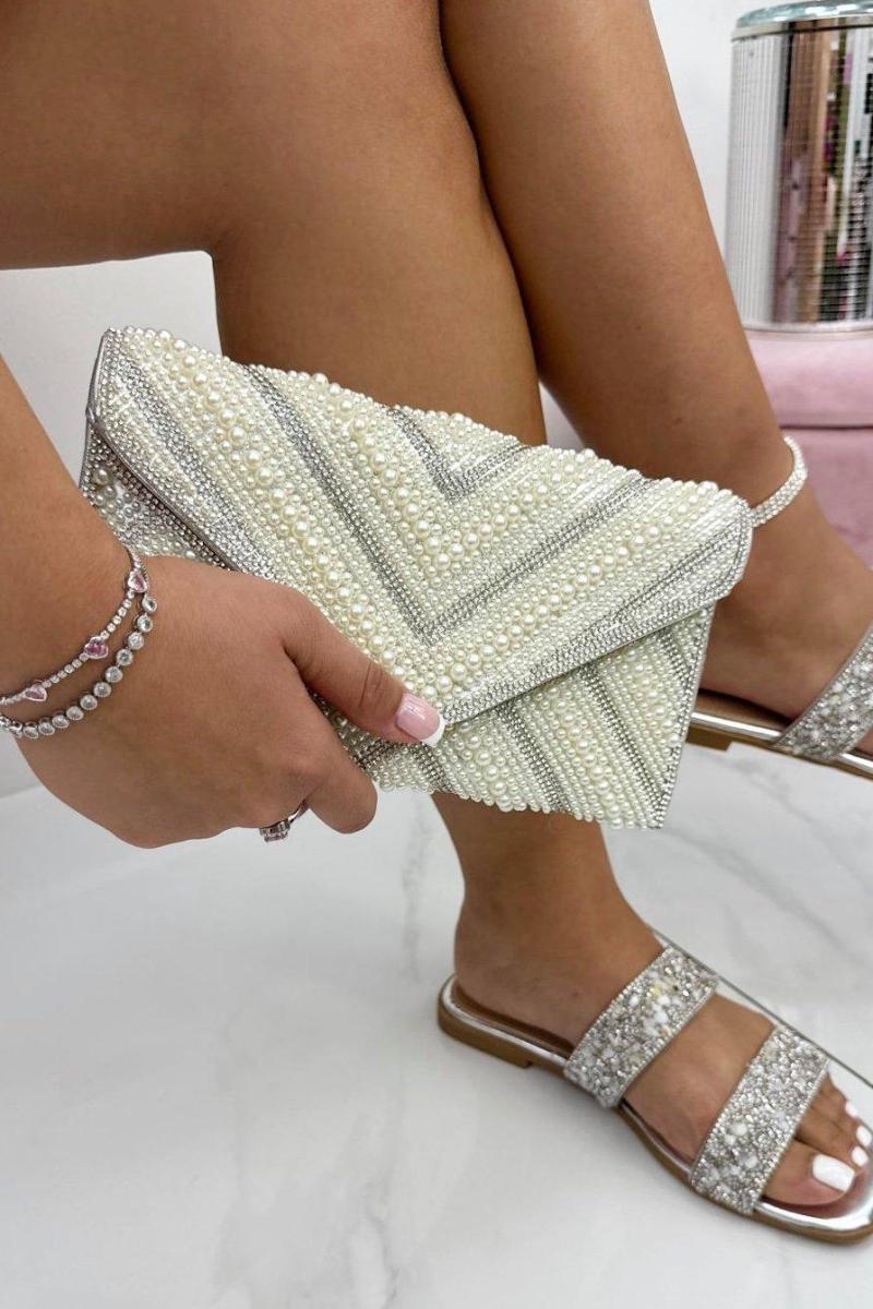 Виглядайте гарно в перлах із нашою новою прикрашеною сумкою-конвертом зі скарбами. Стиль із плечовим ременем на ланцюжку для легкого ефекту або використання як класичний клатч без нього. Ідеально підходить для святкового одягу та ідеальний стиль як для наречених, так і для подружок!