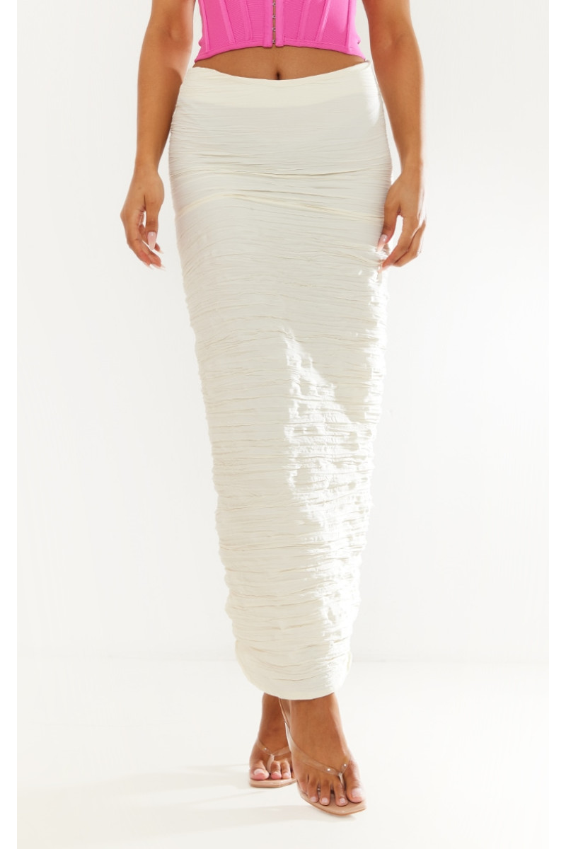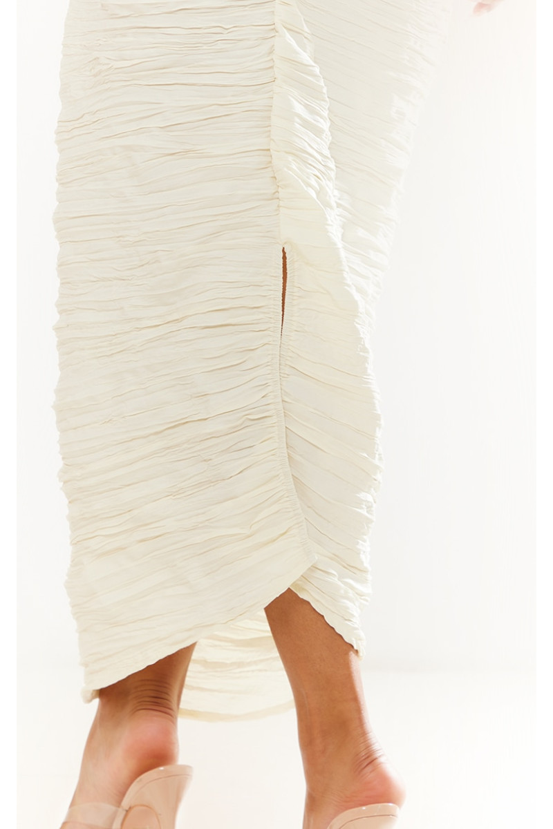 У цьому сезоні кремова атласна спідниця мідаксі з складками є важливою, і ми любимо цей стиль. Ця спідниця виготовлена з кремового атласу з малюнком складок, завдяки якому ви почуватиметеся невимушено шикарно цього сезону. З довжиною midaxi будьте готові звернути на себе всі погляди. Команда з чіткими підборами та ефектним корсетним топом — ми справді одержимі. Довжина приблизно 80 см/31,5 дюйма (на основі розміру вибірки UK 8) На моделі одягнено розмір UK 8/ EU 36/ AUS 8/ US 4. Зріст моделі — 5 футів 6 дюймів. Категорія: низ. Тип продукту: спідниця Midaxi. Колір: кремовий. Матеріал: атлас.