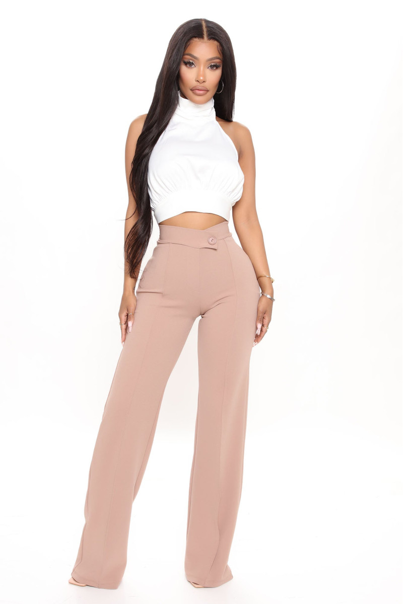 Представляємо елегантні штани з широкими штанинами, які стануть справжньою окрасою вашого гардеробу. Асиметрична деталь з ґудзиками та задня застібка-блискавка додають вишуканості. Висока посадка та елегантна драпіровка штанин створюють витончений силует. Декоративна передня виточка та акуратно оброблений поділ підкреслюють бездоганний стиль. Тканина Crepe Knit з додаванням еластану приємна до тіла та забезпечує комфорт. Довжина по внутрішньому шву - 35 дюймів.