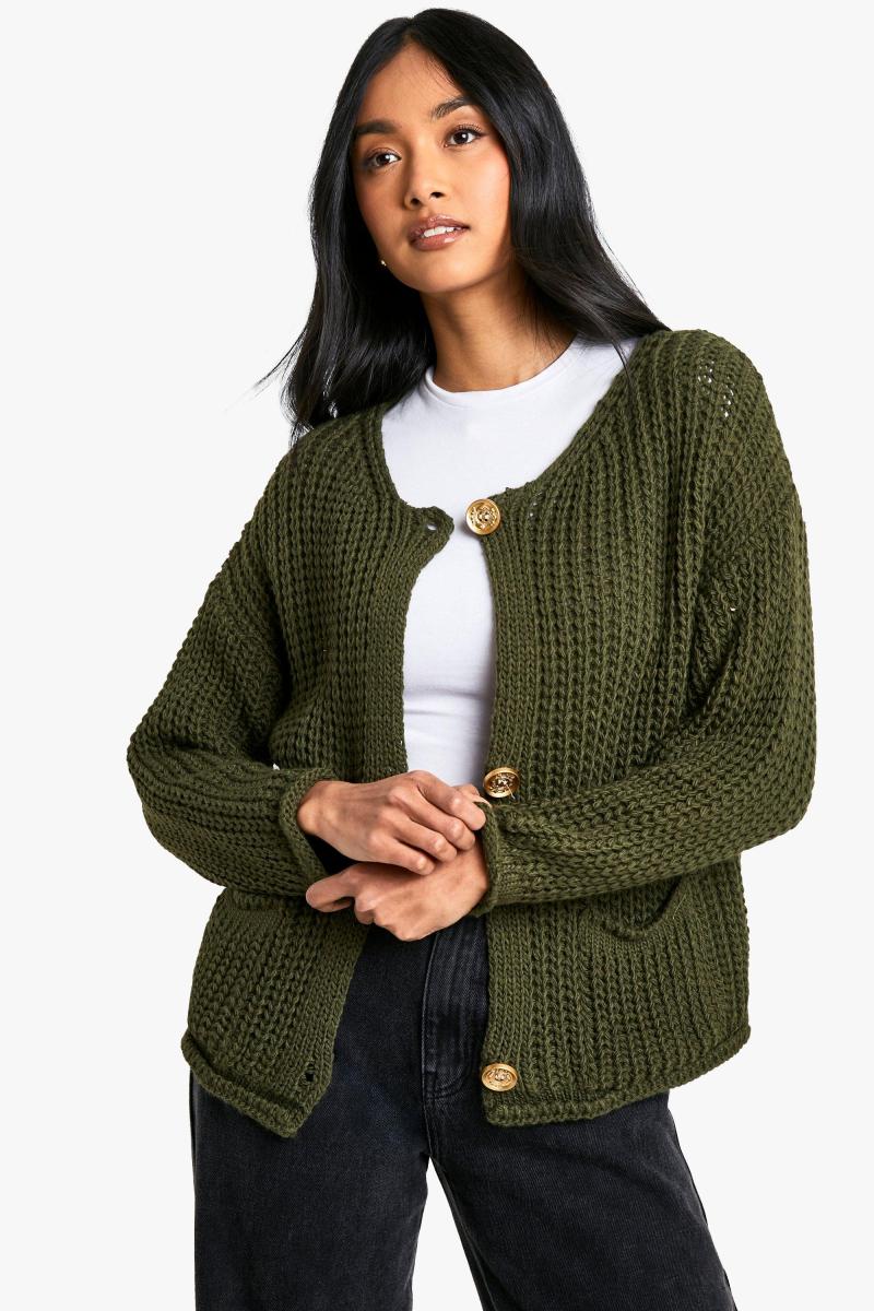 Кучерява в’язана кнопка деталі негабаризації в’язаного кардигану