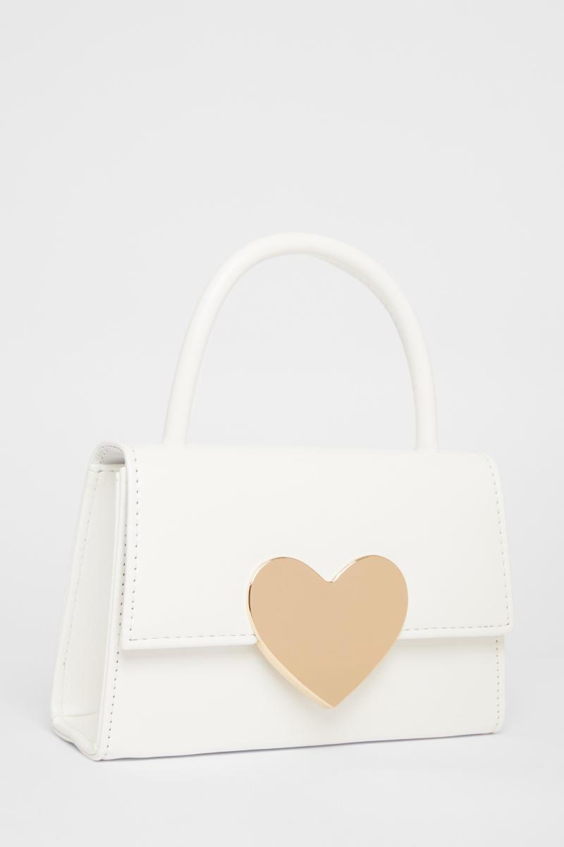 У цій сумці є металева деталь серця та дизайн верхньої ручки, що робить його стильним аксесуаром для різних випадків. Його компактний розмір ідеально підходить для перенесення предметів.